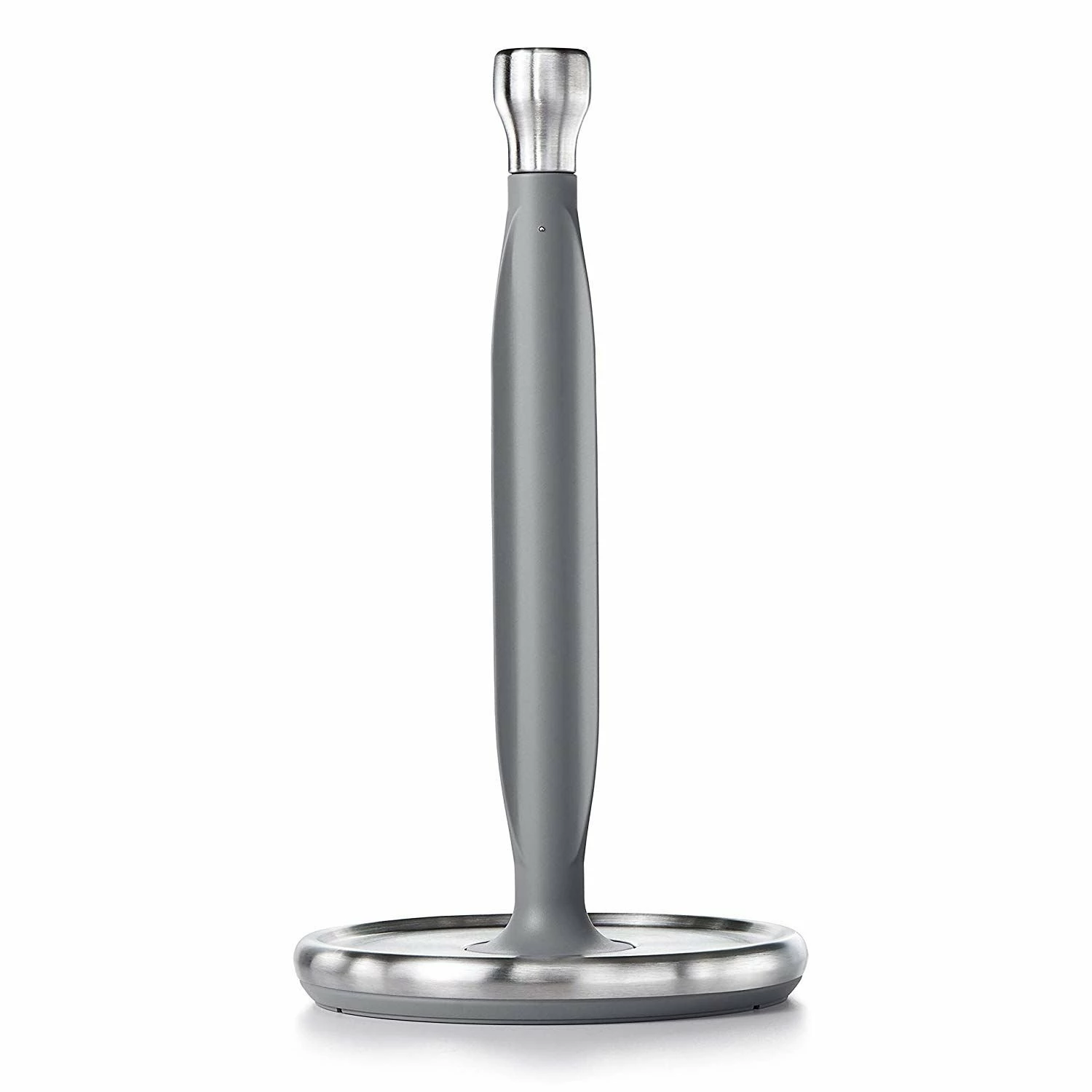 Keep your paper towels ready to take on accidental spills and messes with the stylish OXO Steady Paper Towel Holder! This stainless steel paper towel holder can fit both small and jumbo-sized rolls and is designed with extra-smooth rotation for easy one-handed tearing. With a weighted base that wonβt slip while in use, this paper towel holder has a convenient die-cast knob at the top to keep your paper towel roll in place. Plus, you can use the nifty knob for easy transport. For a sleek paper towel holder thatβll complement any kitchen dΓ©cor, try the OXO Steady Paper Towel Holder today!