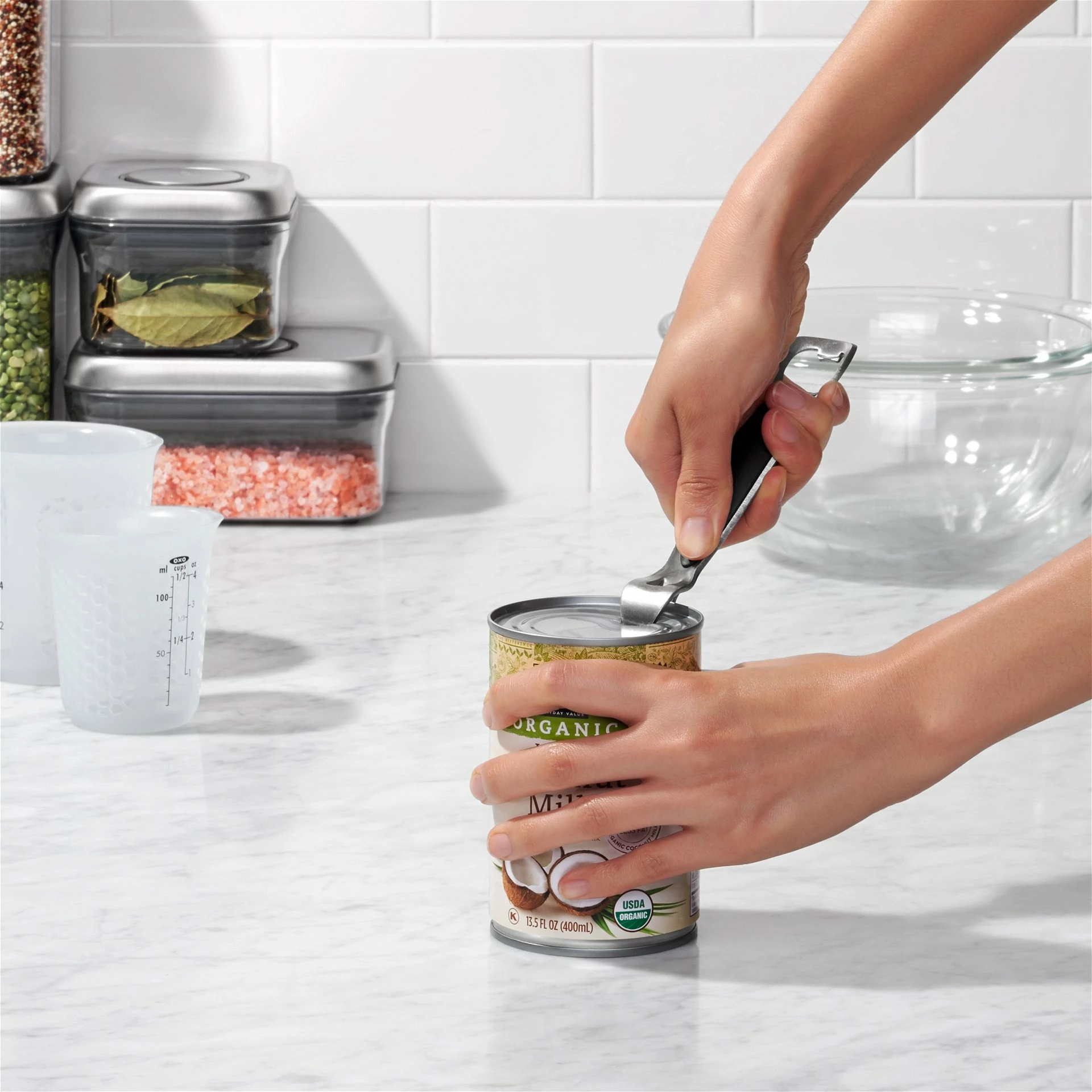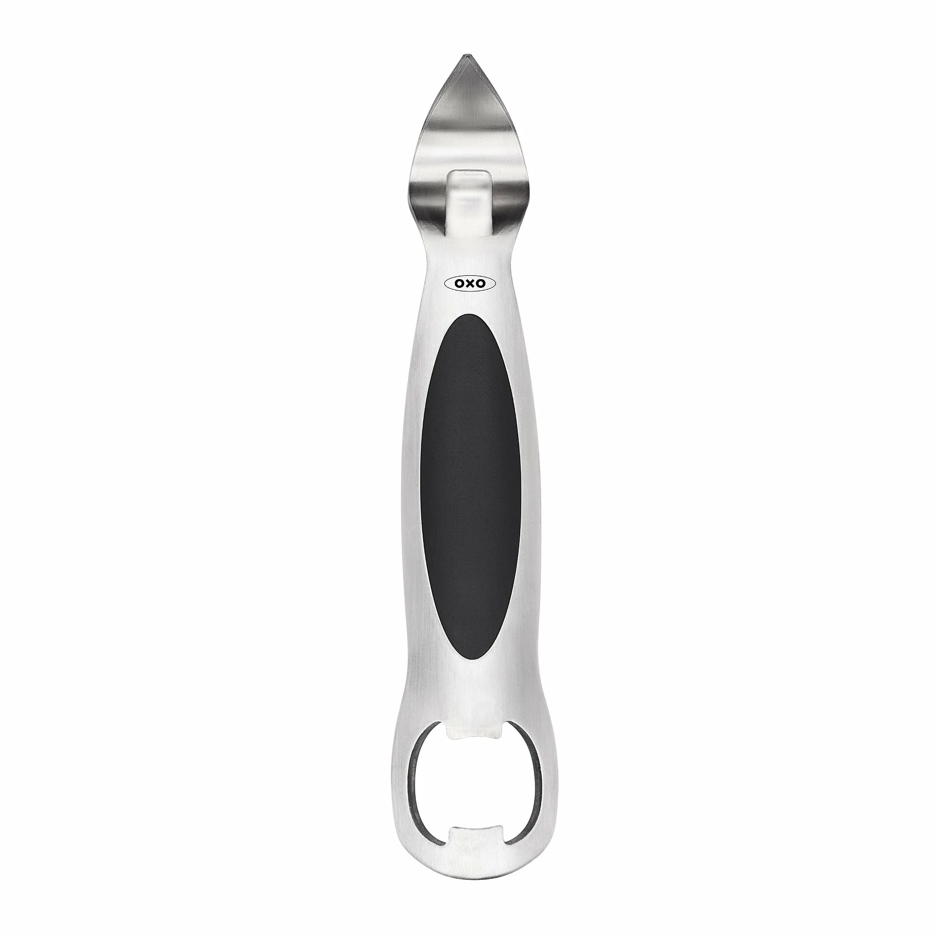Effortlessly open bottles and canned goods with the OXO SteeL Bottle Opener! This sleek and stylish stainless steel bottle opener is extremely durable, allowing you to cleanly pierce your bottle or can for easy removal. With a soft-grip handle for comfort and control, this stainless steel bottle opener is dishwasher-safe for easy cleaning!