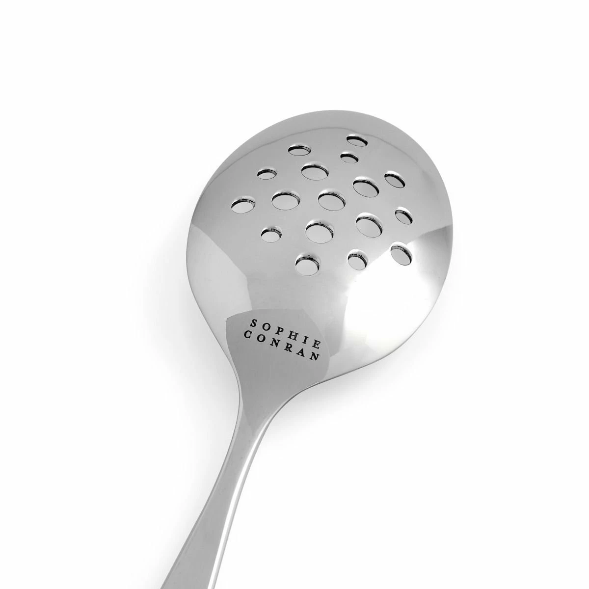 Add a simple piece of functional beauty to your serving flatware collection with the Portmeirion Sophie Conran Slotted Spoon in Floret. This spoon features an elegant, understated design that is practical for everyday use. The contoured handle is both beautiful and easy to hold. This spoon is perfect for serving and plating vegetables, meats, pasta, and more. Made from 18/10 stainless steel, this slotted spoon is dishwasher-safe. Whether you’re throwing a dinner party or enjoying a warm stew with your family, the Portmeirion Sophie Conran Slotted Spoon in Floret isย a practical and tasteful choice.ย