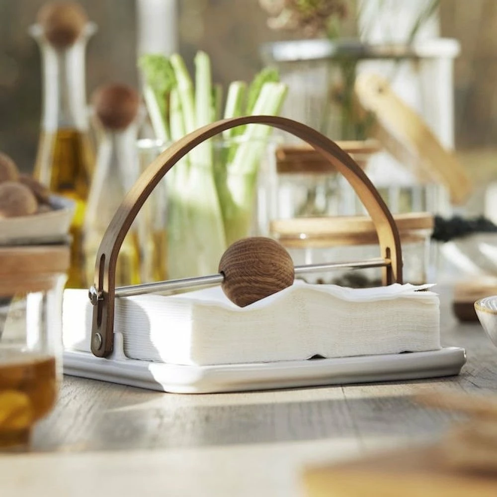 Store your napkins beautifully and keep them ready when you need them with the Sagaform Nature Napkin Holder. From the Nature Collection featuring elegantly designed products made of natural materials and inspired by Scandinavian minimalistic style, this charming napkin holder is crafted from high-quality stoneware with a solid oak wood handle and ball that acts as a weight to keep your napkins in place. Perfect for both indoor and outdoor use! Elevate your table setting with a touch of modern style with the Sagaform Nature Napkin Holder today!