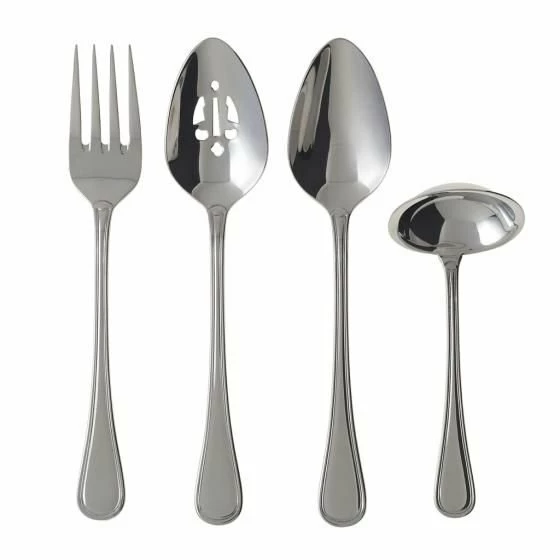When youβre looking to make a sumptuous, refined statement, set the table with the Merlemont 4-Piece Serving Set by Villeroy & Boch. The serving setβs clean lines, mirror finish, and alluring curves add sleek elegance to your daily dining. This 4-piece hostess set includes a meat fork, serving spoon, vegetable spoon, and gravy ladle to ensure that youβre prepared for hungry guests. Simply designed, this durable, rust-resistant serving set uses well-known 18/10 stainless steel for everyday performance you can trust. With the Merlemont hostess set, you can guarantee that youβll always have just what you need to serve helpings of creamy mashed potatoes, fresh vegetables, pot roast, and much more!
